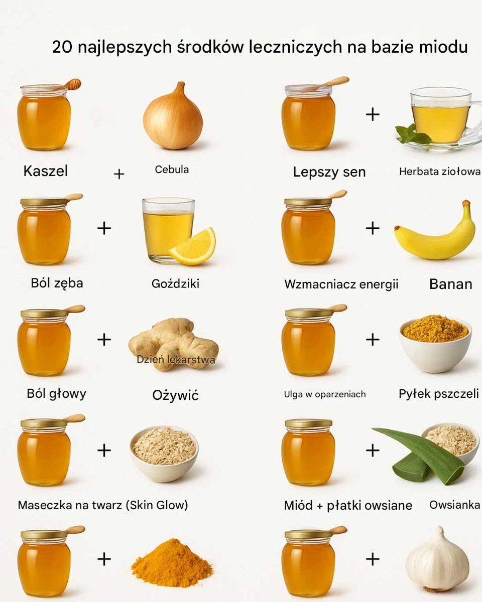 Miód, naturalny słodzik produkowany przez pszczoły, jest ceniony od wieków nie tylko za swój zachwycający smak, ale także za niezwykłe właściwości lecznicze. Od starożytnych cywilizacji po czasy współczesne miód był wykorzystywany w różnych kulturach ze względu na swoje właściwości lecznicze. W tym artykule omówiono 20 najlepszych środków na bazie miodu, pokazując wszechstronność i skuteczność miodu w promowaniu zdrowia i dobrego samopoczucia.